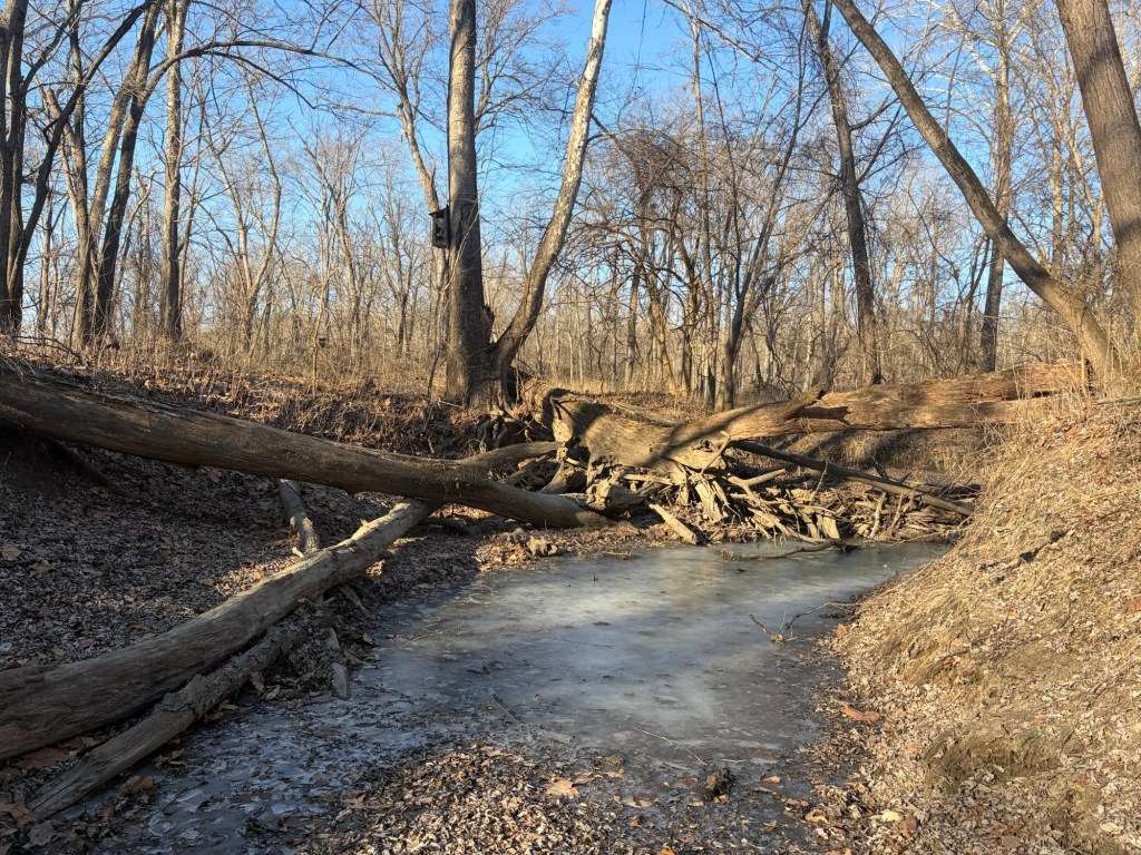 After walking around the lake we decided to walk to the creek. Most of it was dry except for a few area which were still frozen over. The temperature made it up to the high thirties today which is a much better walking temp than the single digits. It was me, Dad, and the youngest. None of us had ever walked the creek bed in winter before. Sometimes in the summer it dries up but if it does it’s usually still very muddy.