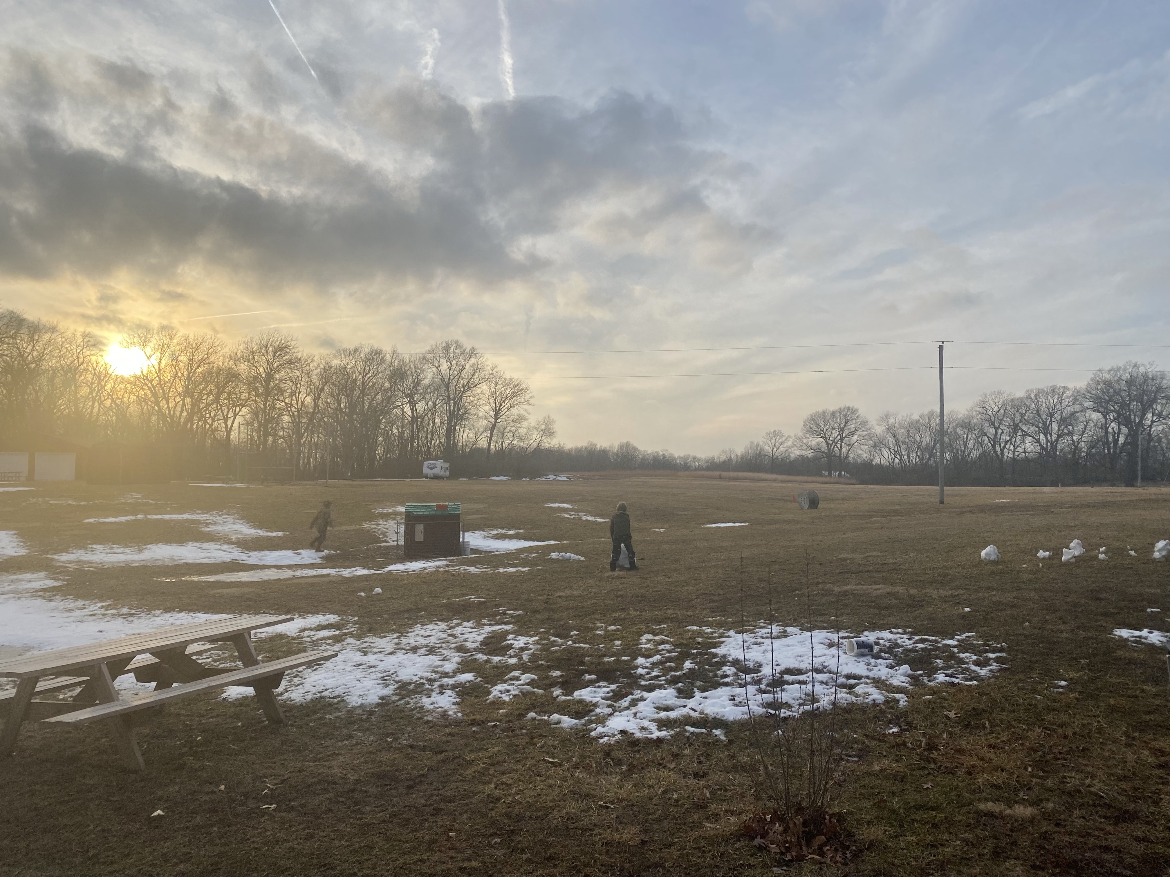 I didn’t go to class tonight. Josh is gone for most of the week in North Carolina. Once a year they have this February week-long gathering for camp people. I didn’t feel comfortable leaving the kids alone for that long. Since we’re allowed to miss two classes in an 8-week period, I figured this would be my time to miss. We walked down to the lake this evening and amazingly the lake still had ice to walk on. The snow we received in the recent snowfall has nearly melted in the past few days of fifty degree weather.