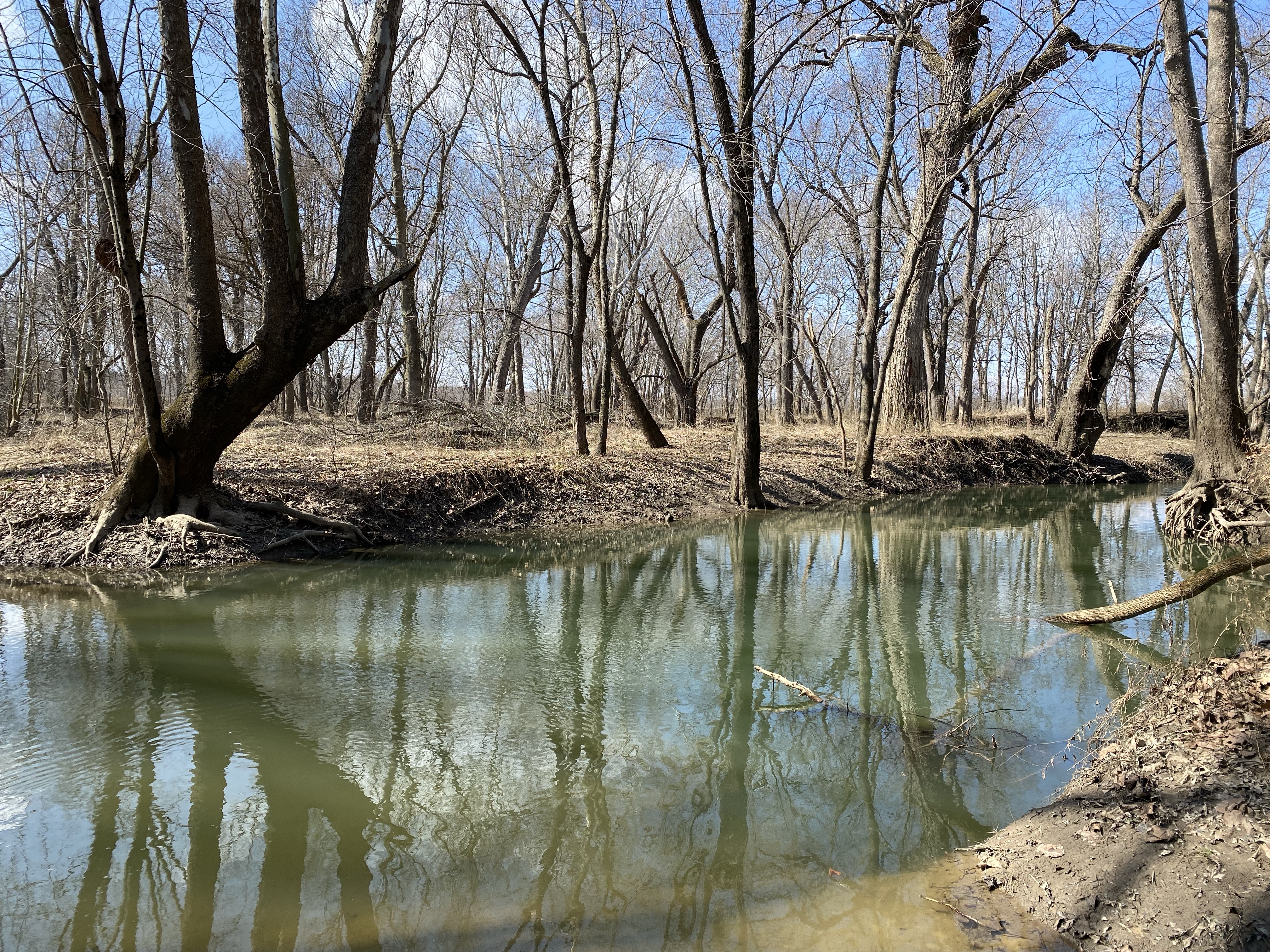 It only happens in the evening. The photographers call it golden hour, which I find to be quite the appropriate name. The morning has one too, though it’s only a few minutes. In terms of color, March is about the brownest, muddiest, ugliest month there is, though I’d forgotten about the way the rising creek turns emerald green. And yet I still find it fascinating, still don’t care that it isn’t quite spring, when where I’m standing by the creek will be completely under water. In the summer, when it’s dry, the camp kids play here which is something I don’t enjoy thinking about. I’ve changed some way in adulthood, as creek-walking used to be one of the few camp activities I actually liked.