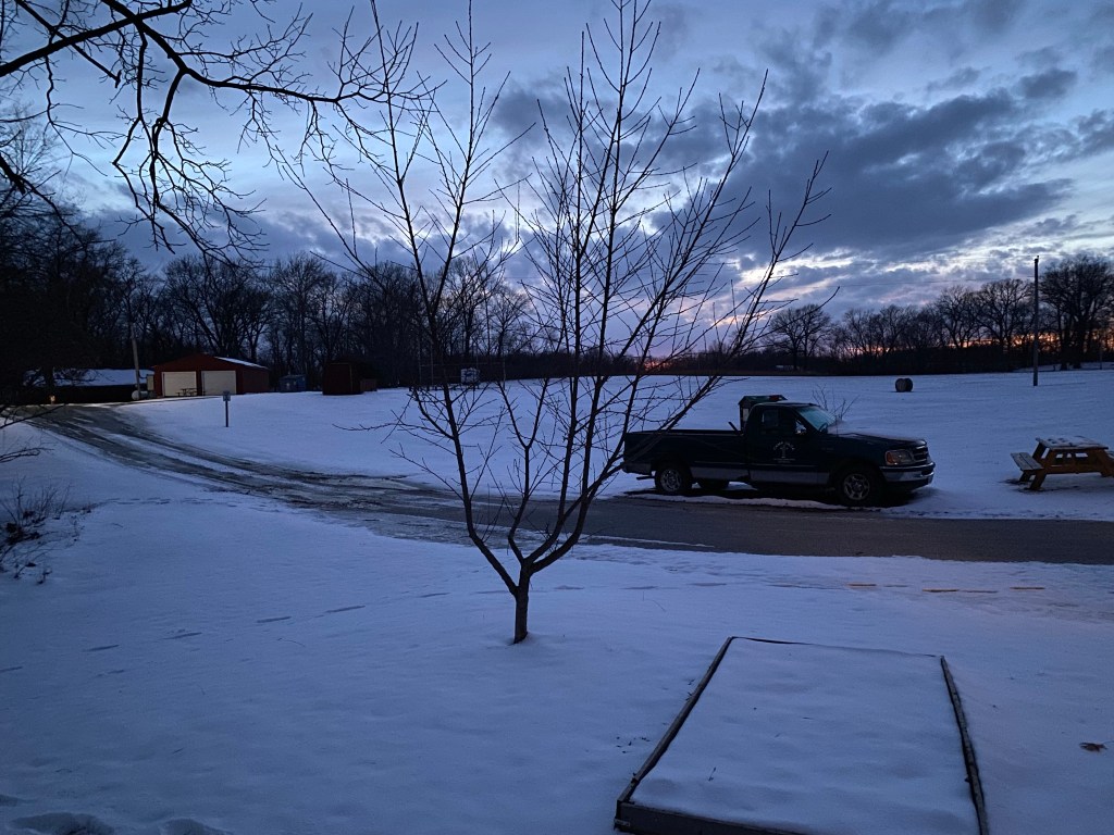 We got some more snow last night. There’ve been enough snow days in the school year now that schools don’t call snow days as quickly. Josh had another chapel service this morning, this one also being over two hours away. He called to let me know the roads were slick, and to have the kids drive slower and leave earlier. I left home about quarter to seven this morning to walk over and cook for the quilting group that is here this weekend. The big kids texted me around 7:40 to let me know they’d made it to school. The ladies began coming out of their rooms around 7:45. The boys came over around 8.