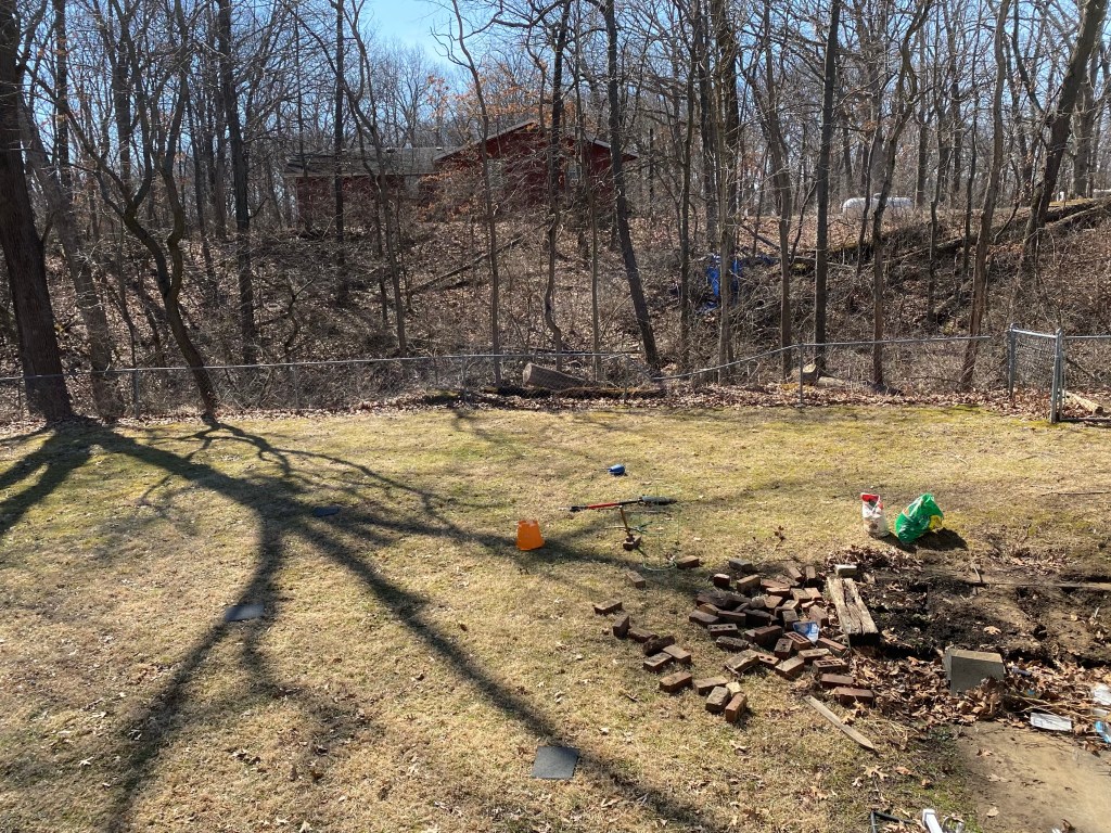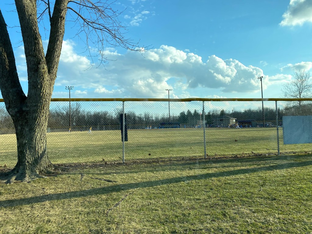 Everyone was well enough to go to the game today. Baseball season has started again, along with track, which is a new sport this year. I watched the first game from afar again this year, not because I couldn’t be close to people or walk to the bleachers, but because I wanted to sit by the tree. Last year the kids had gotten me a rocking lawn chair for mother’s day, so I bought that along with a school book to read.