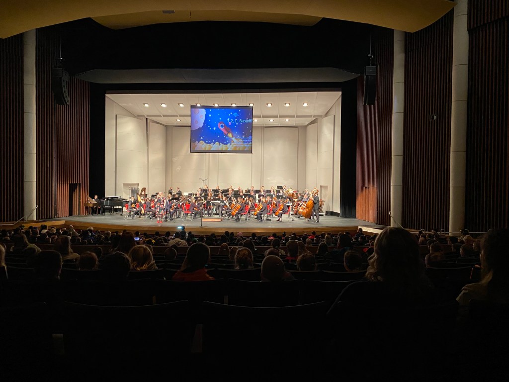 The boys and I took another field trip this morning. Our pastor’s daughter had a birthday today. They invited a few homeschool families to join them for a concert at the local college, and then lunch and games at a nearby park. It was an absolute thrill to hear a live symphony orchestra. The music was combined with a screen show and narration teaching about our solar system. With each planet they also featured an instrument from the orchestra. They weren’t able to cover all of the instruments.