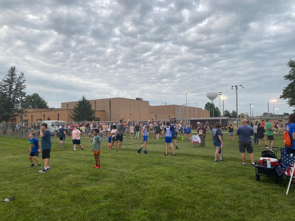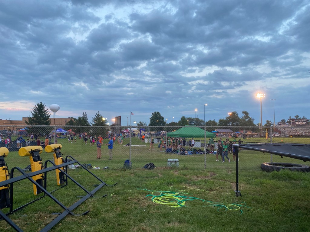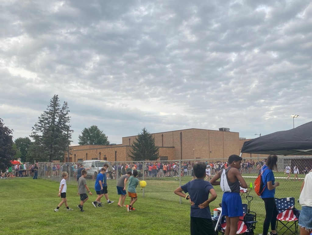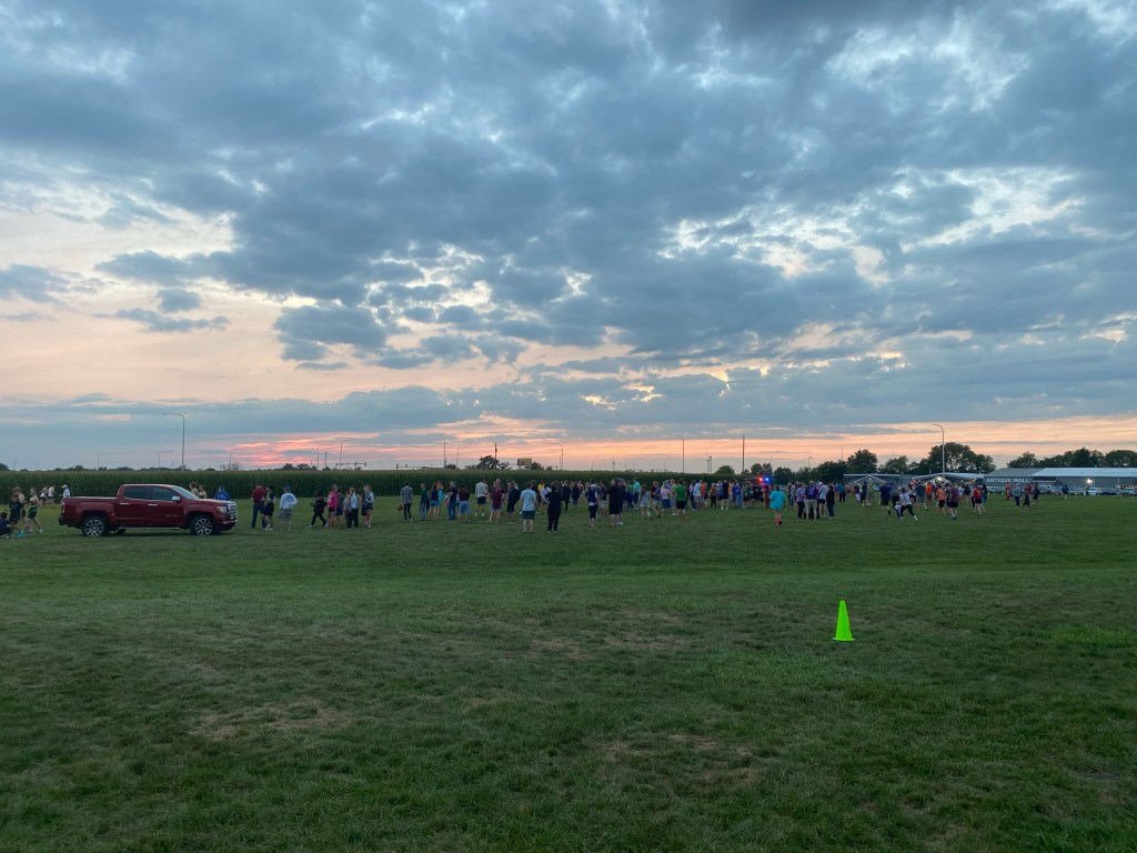 The high school kids had their first meet yesterday. Their team is even smaller this year, with two girls including my daughter, and then four total boys. Two of them weren’t there last night and are debating on whether or not they’re going to keep running. Cross country is not one of the school’s primary sports. Most of the sports boys in the fall play soccer. The girls play volleyball.