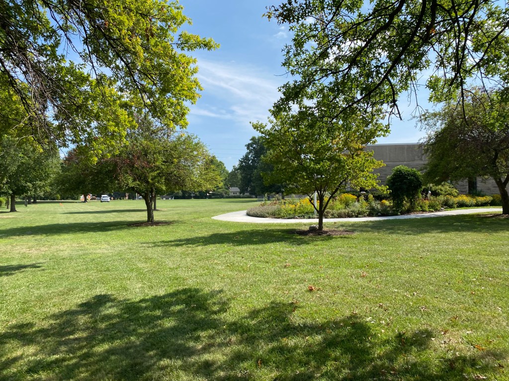 The campus was pretty on my walk today. We did a lot of sitting this morning so it was nice move around and stretch my legs. Josh and I talked about how we were feeling the crunch of not having his mom there to help with the pick-ups and occasional rides. I know she misses the meets. They’re planning to get back to Springfield on Wednesday.
