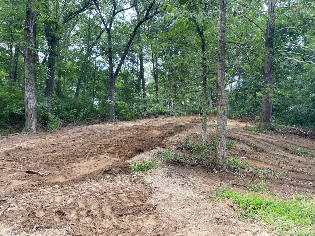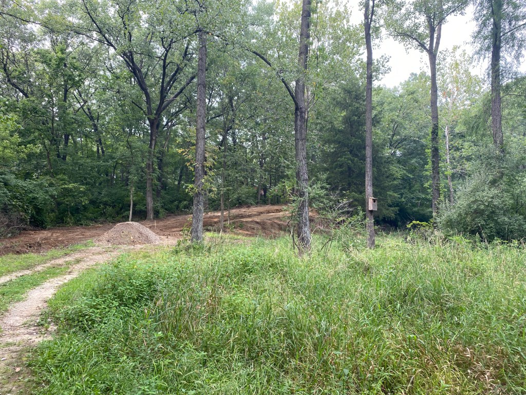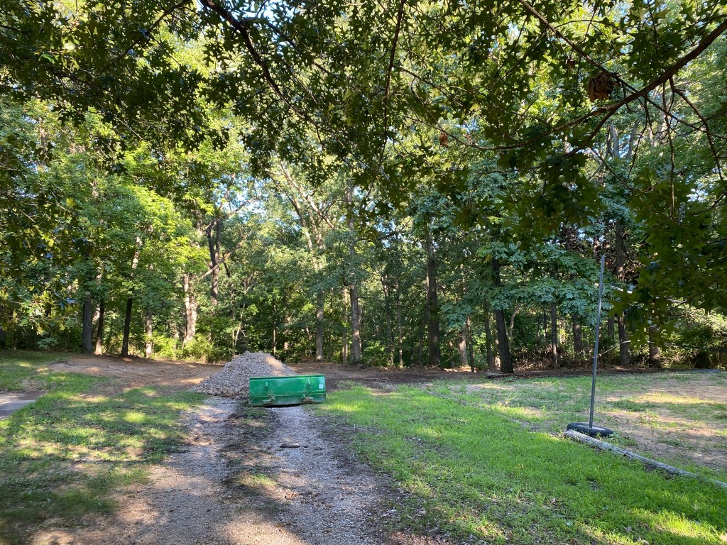 So he’s trying to build up the road, the trail, so that the middle part is higher than the rest of everything else. I have to say, it looks awful, in that it is just so different from what it was. Last summer my father-in-law came and widened the trail by plowing over the honeysuckle on either side. I liked that change because it opened things up. You could see into the woods more and it just felt less claustrophobic.