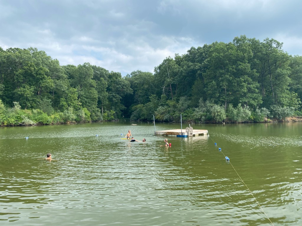 I woke up when Dad and Elianna were back home. We all went down to the beach and played. Dad stayed with the boys and I took the paddleboard out to ride with my daughter who decided to swim for her running workout. She swam to the far side of the lake and back and then we stayed in the swimming area a little longer. It really didn’t seem too hot.