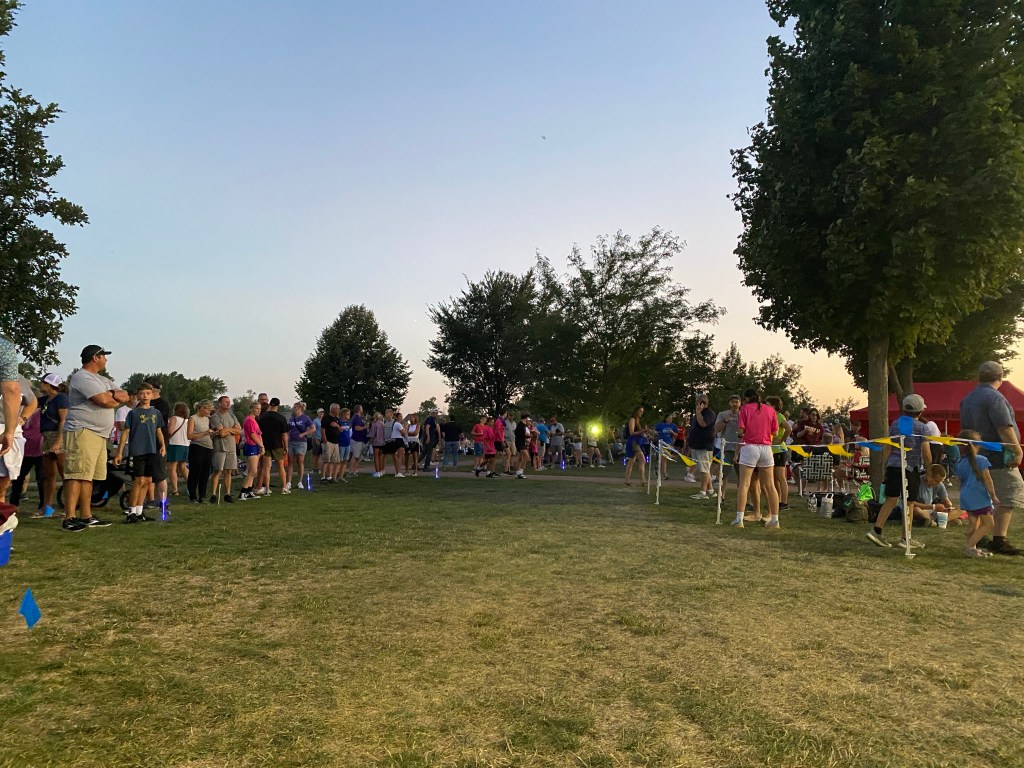 It was absolutely enormous. There were tents everywhere and people everywhere. The website said they have over 5,000 participants every year where they have a JV high school race for boys and girls, then varsity high school for boys and girls, then college women, then the college men ran at 9:10PM. They called the it Augustana Twilight Invitational.
