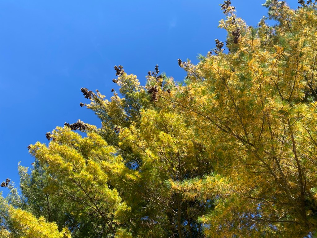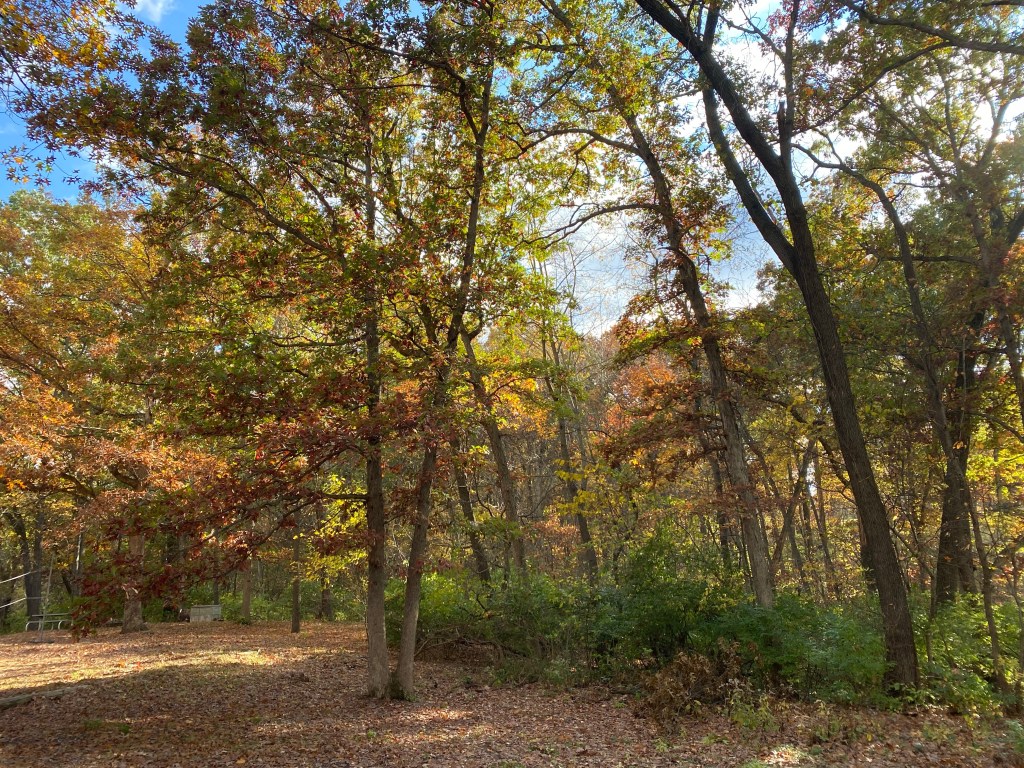 It’s chillier outside today. It’s sunnier though after several day of clouds and it always looks nice to see the light in the trees. I didn’t stay outside very long when I took this. I’m still pretty tired and I need to go to class tonight. Something I’ve found helpful if you’re needing to guarantee you get a good nap is to put on a podcast while resting in bed. If music is playing I won’t fall asleep, especially if I know the songs that are playing.
