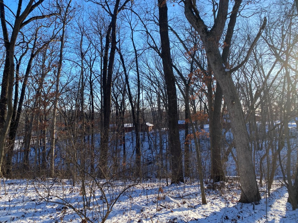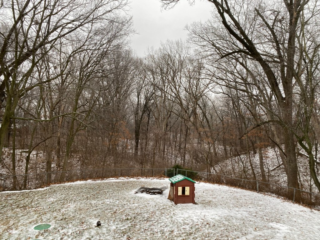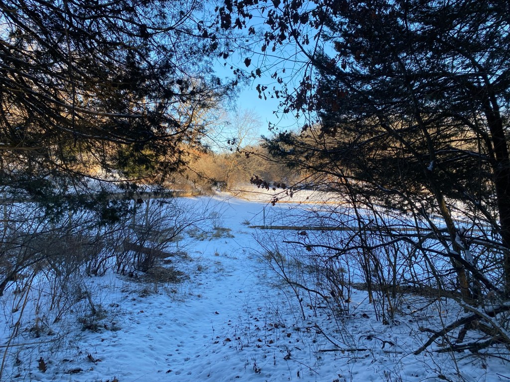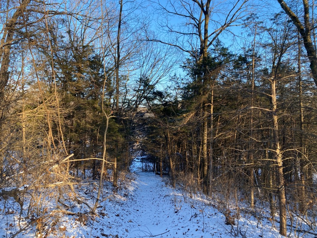 It was warmer today, less biting outside. Dad and the kids went down to the lake again. I haven’t made it that far. I guess I haven’t the interest. Today I stuck to the main path, turning around at the swings. The outside cats have been holed up in the roof somewhere for the past several days. That’s where they go when it’s cold. They came out yesterday and were out again today, back to roaming around.