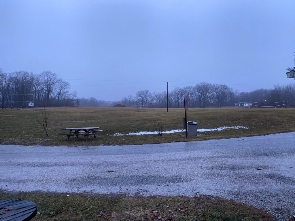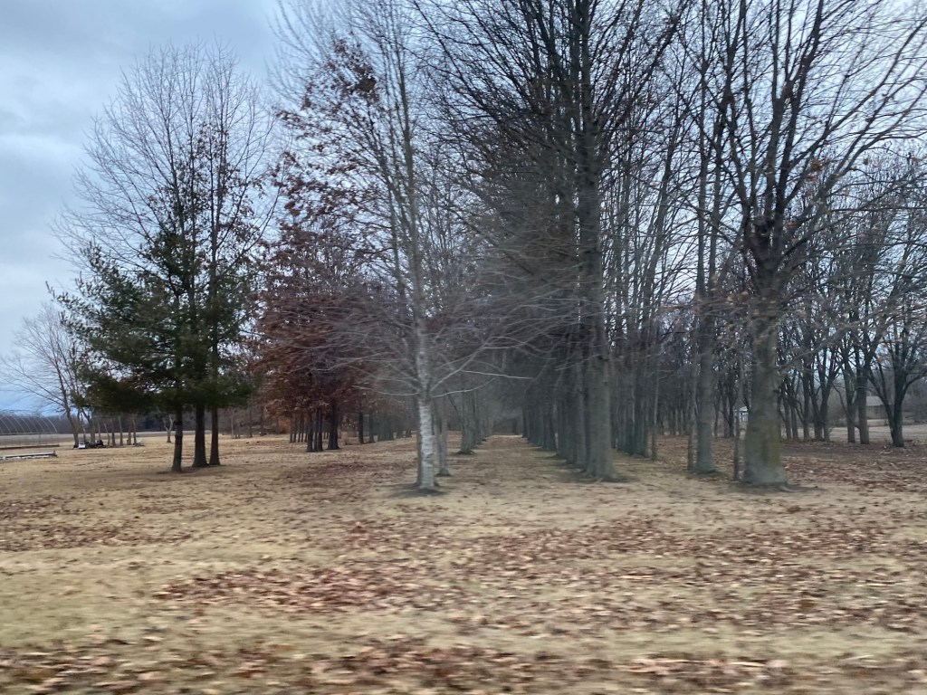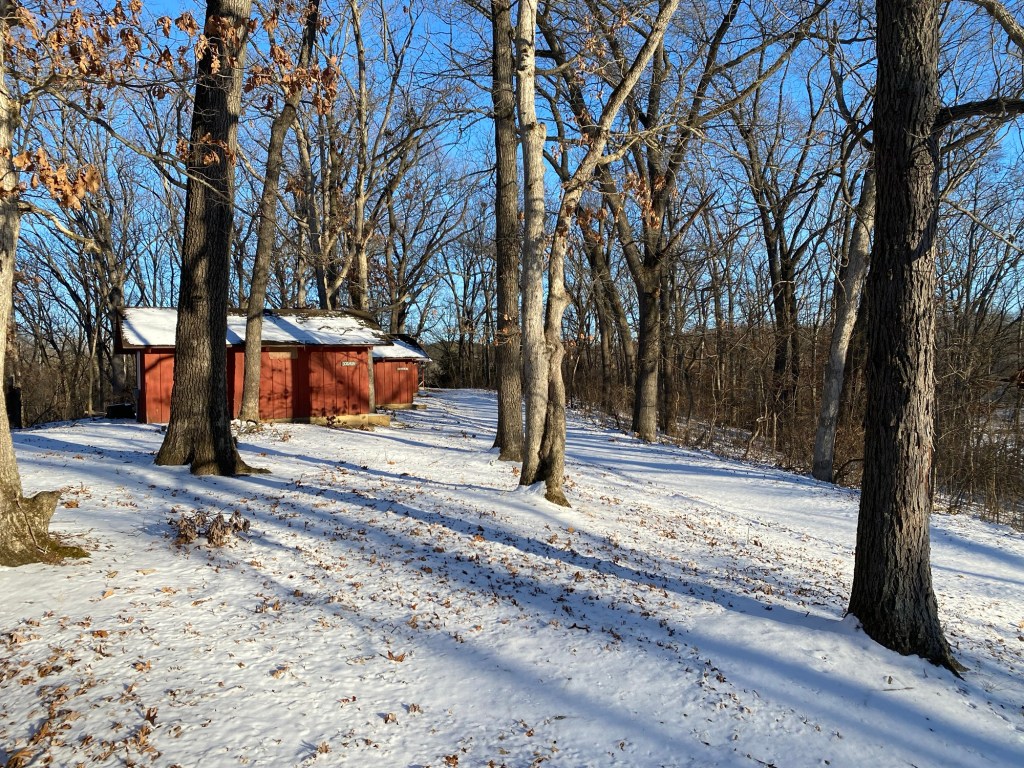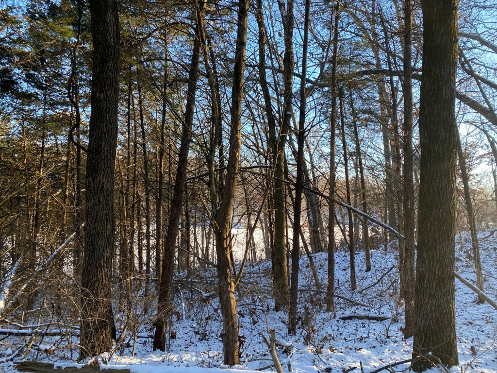 It was warmer today, less biting outside. Dad and the kids went down to the lake again. I haven’t made it that far. I guess I haven’t the interest. Today I stuck to the main path, turning around at the swings. The outside cats have been holed up in the roof somewhere for the past several days. That’s where they go when it’s cold. They came out yesterday and were out again today, back to roaming around.