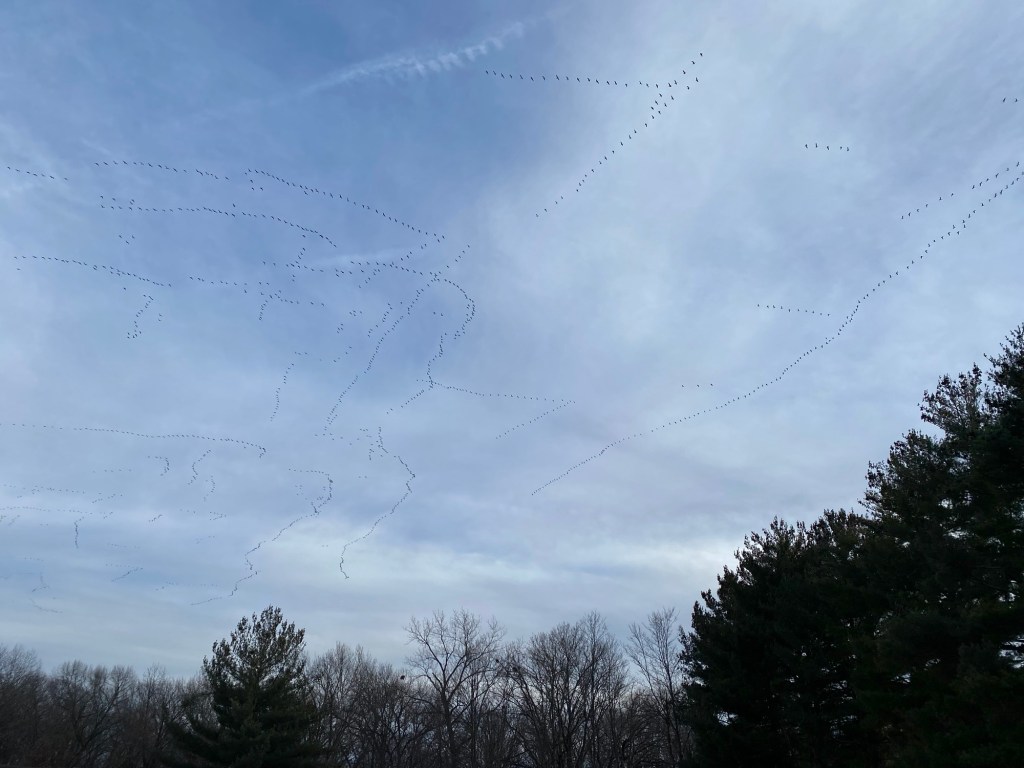 But those are only minor thoughts. Some of the geese flew back this afternoon while I was walking. I admittedly wasn’t expecting them back this early, I figured it’d be more in the middle of the month. But anyhow there were a bunch of them. The past three days I’ve walked for over an hour straight which is the most I’ve intentionally walked in over three years. It’s quite the miracle.