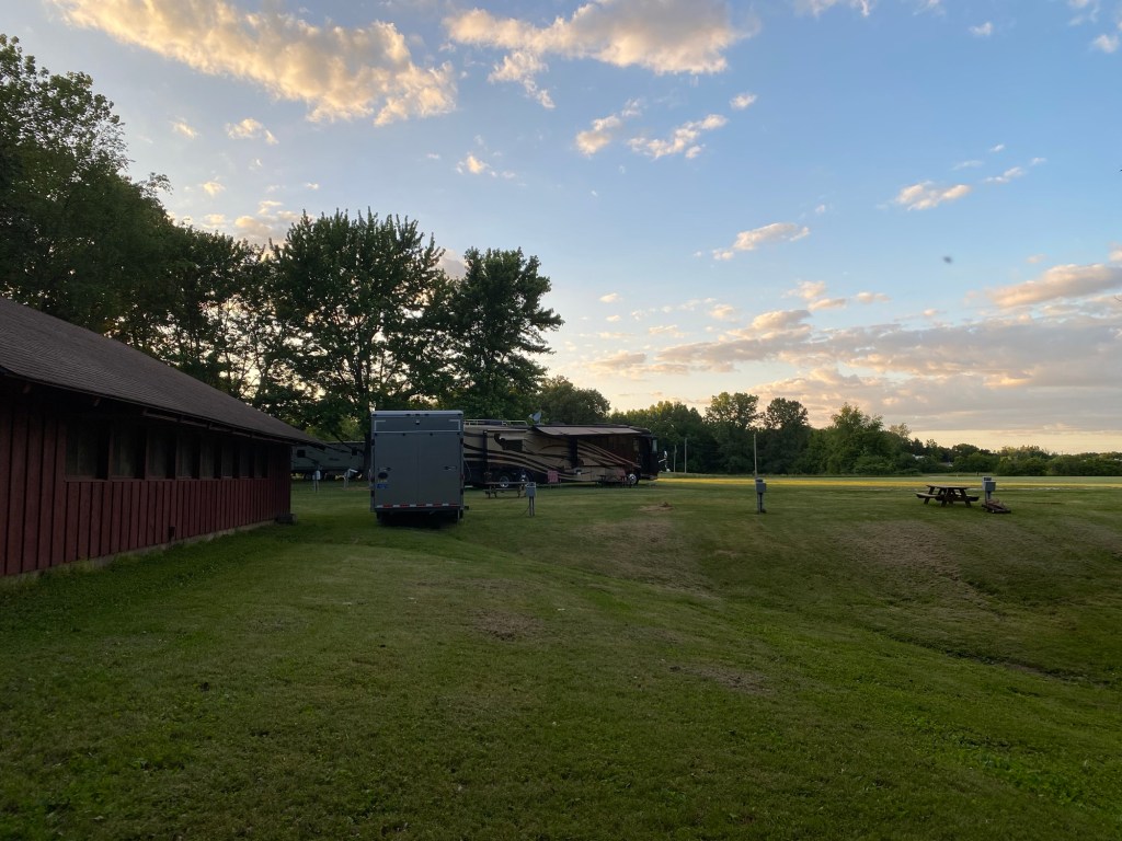 Despite today being more of a rest day, I still ended up with over 7,000 steps. I’ve watched the averages slowly go up. All I did was walk down and back to the dining hall a couple of times, plus once in the evening just to see what was going on. Elianna and I spent some time in the CGC kitchen. Afterward she went to the hammock and asked if I wanted to join her. We sat squished side by side watching the kids on the athletic field.