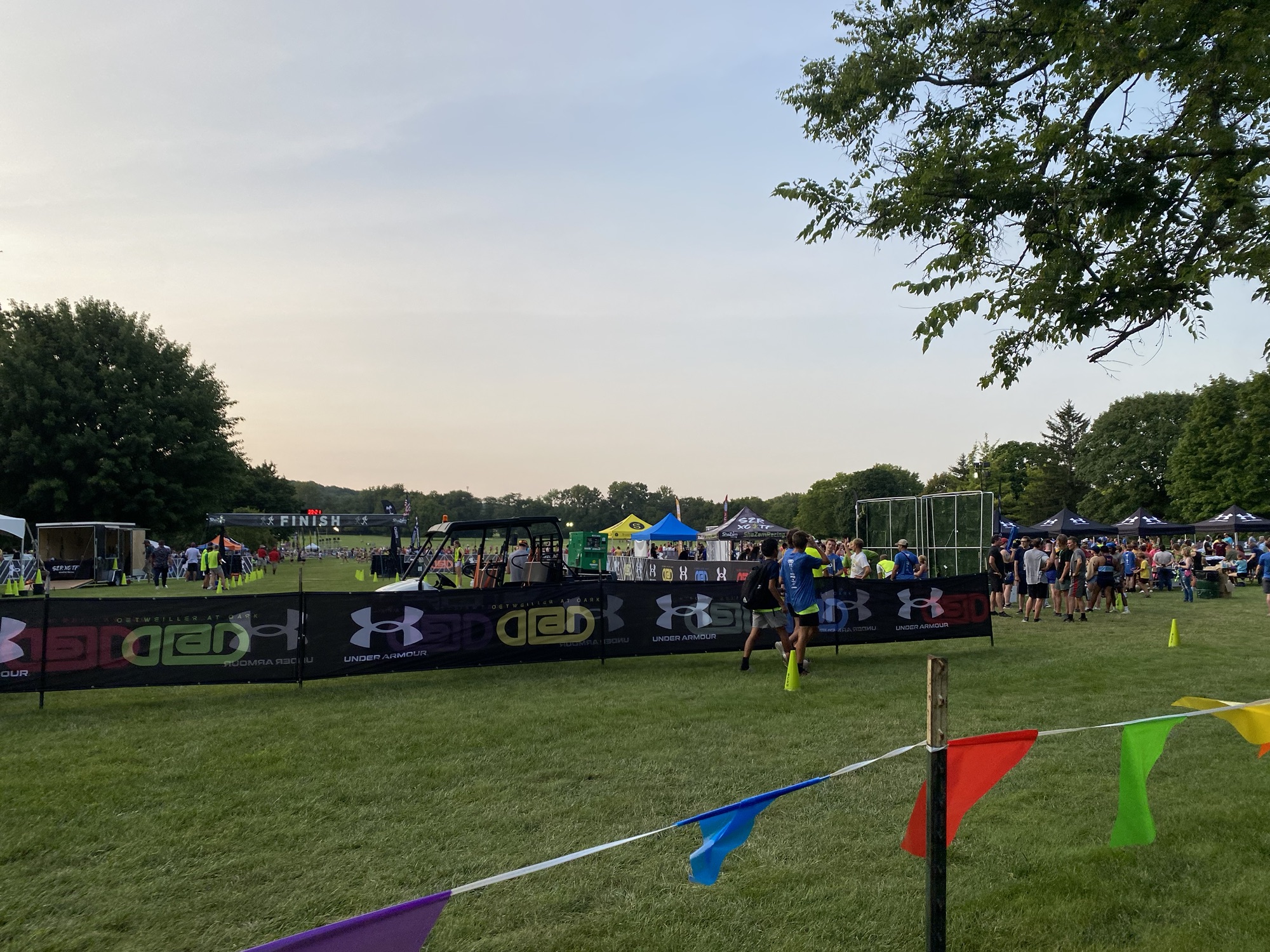 Dad and Elianna watched from camp. It was the last night of the camp season so they had to be there more than the others. Ethan and Matt spent the past week helping out at another camp up north. On their way home from there they picked up my niece in Rochelle who wanted to come for the weekend. The kids wanted food before the race but I told them we had to wait until afterward. We found a nice spot under a tree.