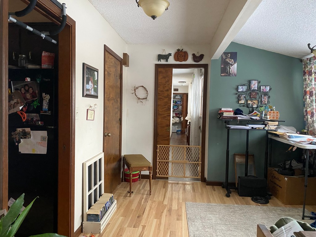 Dad picked them up. He was back into town a little before I was done. I texted the bigger kids and said they wouldn’t have to pick the boys up. Zorro was with the boys as well and my mother-in-law had brought his kennel into the mudroom instead of the garage since it was still very cold. It was designed as a place to get dirty where my father-in-law could come in from the fields with his farm boots and farm clothes.
