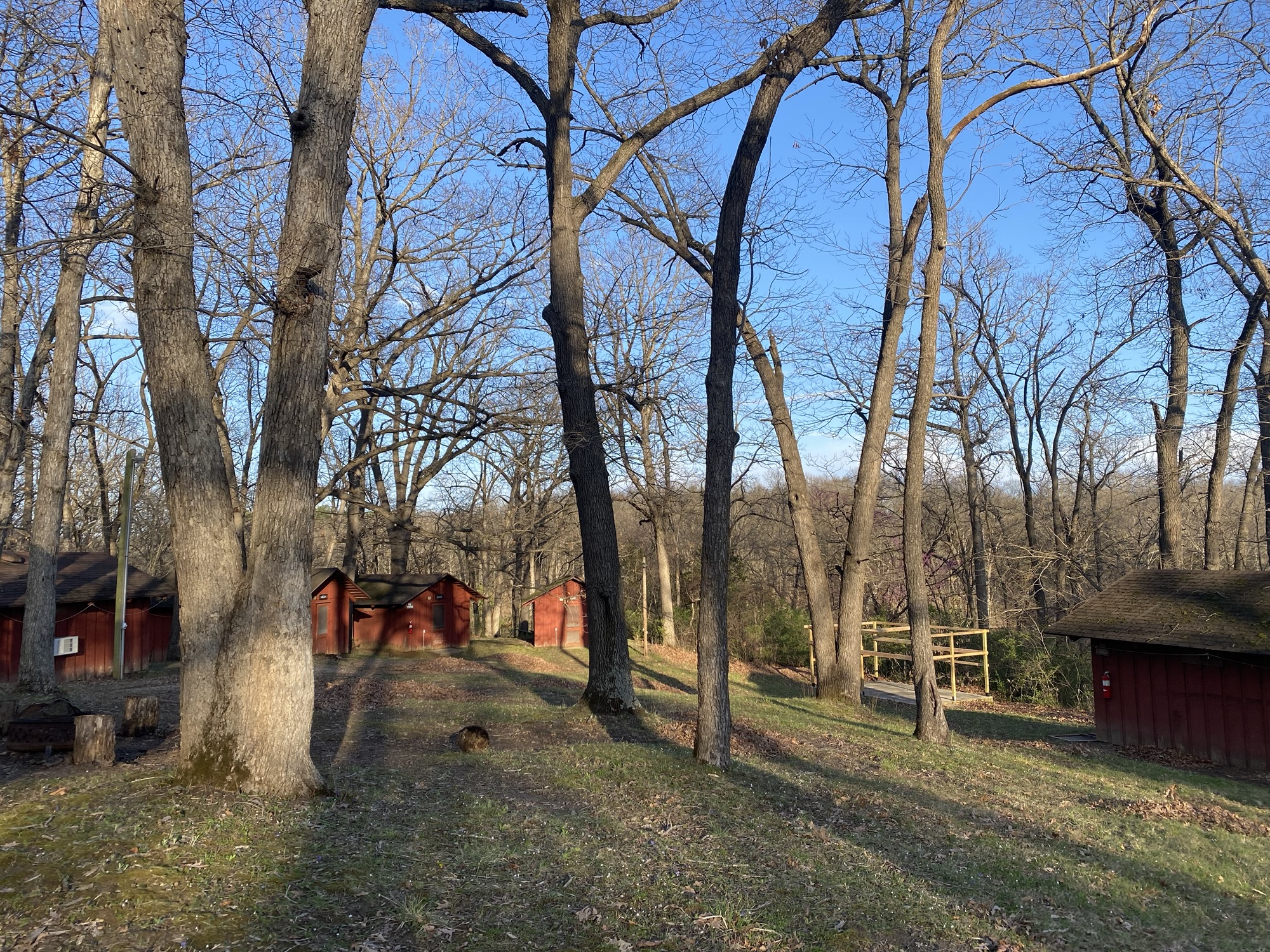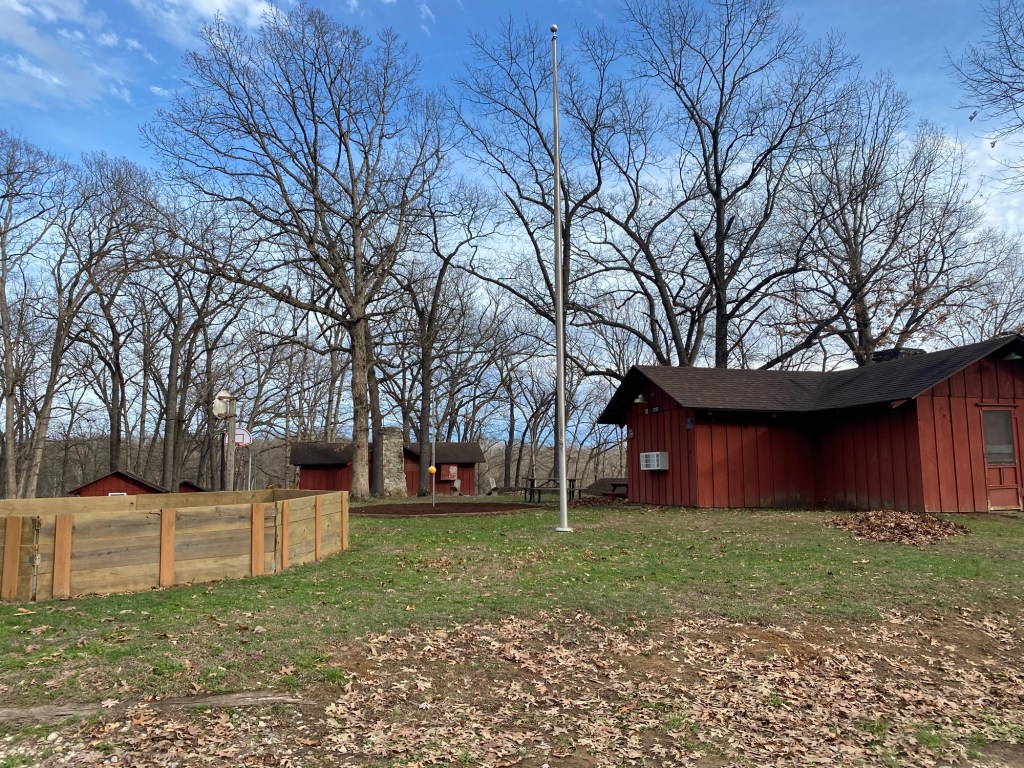 Tonight we enjoyed a nice evening outside. The boys were playing pickleball at the volleyball net while Josh and I were taking our individual walks. Along the road I met Elianna also walking with Zorro. The purple flowers drew me over to the girls’ cabins and then I walked around there enjoying the small change of scenery. The trees are still pretty bare and when I came over the lake hill I marveled at the sun’s light.