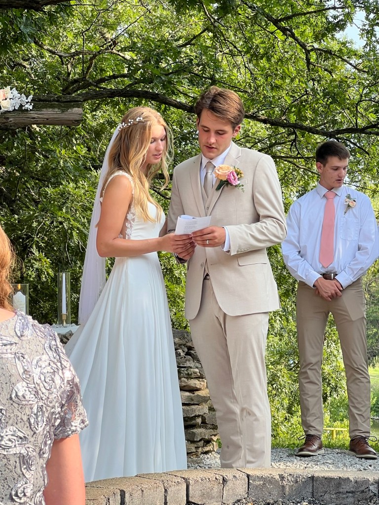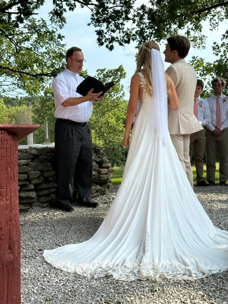 But you could still hear everything. When Laura walked down the aisle I did not look at my son. I know that’s what people do, they look at the groom to see what his reaction is to her. I wanted to look but I was in the front row on the end and I didn’t want to be disrespectful to Laura as she was walking down looking beautiful and radiant, to no surprise. But people told me he was grinning from ear to ear and looked very happy.