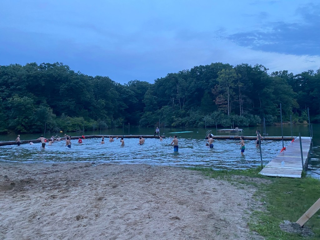 We had our family night. For supper we went to Cancun and spent some time trying to have more meaningful conversation. Once we were back at camp we took Zorro and all went down to the lake. Zorro was off his leash and loved running around. After that we went back to the house. I talked with Ethan and Laura outside. We eventually all ended up taking these fun music quizzes on YouTube where you guess songs played from certain decades.